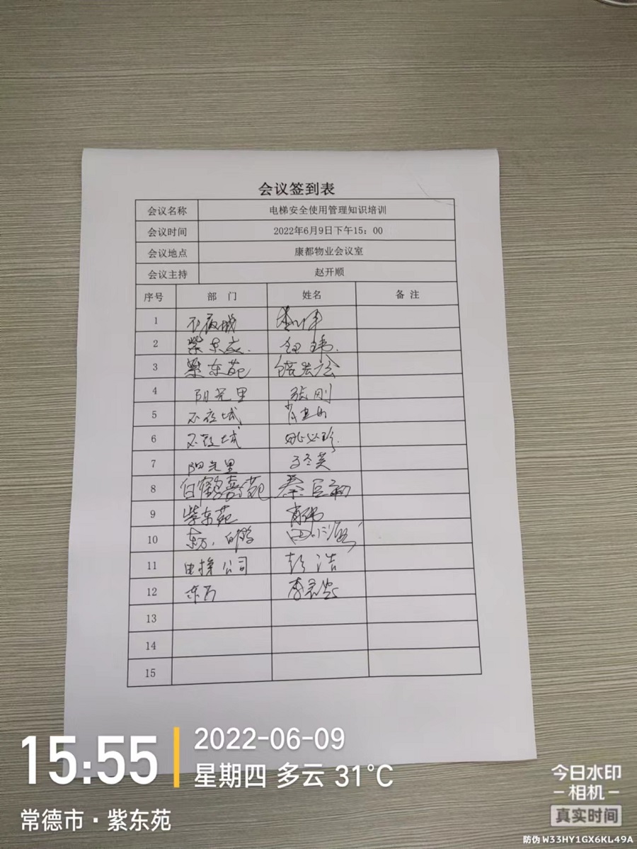 2022年6月9日下午三點(diǎn),公司組織各項(xiàng)目負(fù)責(zé)人及項(xiàng)目相關(guān)技術(shù)人員在紫東苑小區(qū)參加電梯安全使用管理知識(shí)培訓(xùn)。